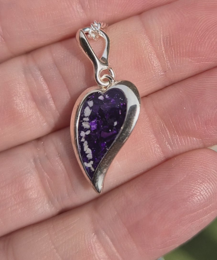 Our New Silver Heart shaped pendant with silver necklace offering space for ashes, hair or breast milk.